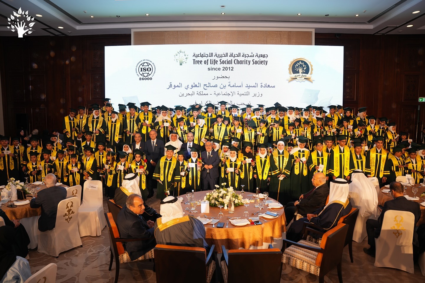 Tree of Life Association Celebrates the Excellence of its Orphans at its 8th Gala Dinner In an atmosphere filled with love and achievement, the Tree of Life Social Charity Association organized its 8th annual ceremony to honor outstanding orphan students on Monday evening, September 15, 2025. The ceremony was attended by His Excellency the Minister of Social Development, Mr. Osama bin Saleh Al-Alawi, and His Excellency Brigadier Abdullah Ali Muantar, Deputy Governor of the Northern Governorate. They were received by the Chairman and members of the Association’s Board of Directors, a number of social figures, supporters, and the students’ parents. It is worth noting that the number of honored orphans reached 250 outstanding male and female students. The program included various segments of recitation of the Holy Quran, followed by a speech by the Association. After that, His Excellency the Minister delivered his inspiring and encouraging speech. In her speech in English, outstanding student Zainab Abdul Fattah expressed her gratitude to the Association and everyone who supported the educational journey, stressing that this honor motivates them to continue to excel and serve the nation. The ceremony concluded with the distribution of certificates of excellence and gifts of appreciation to the honorees, and taking commemorative photos that documented a moment of shared pride and honor between the students, their families, and the association's organizers. It is noteworthy that the eighth orphans' excellence ceremony coincides with the (13) anniversary of the association's founding, to confirm its firm commitment to the path of giving and supporting education as an investment in the future of generations.