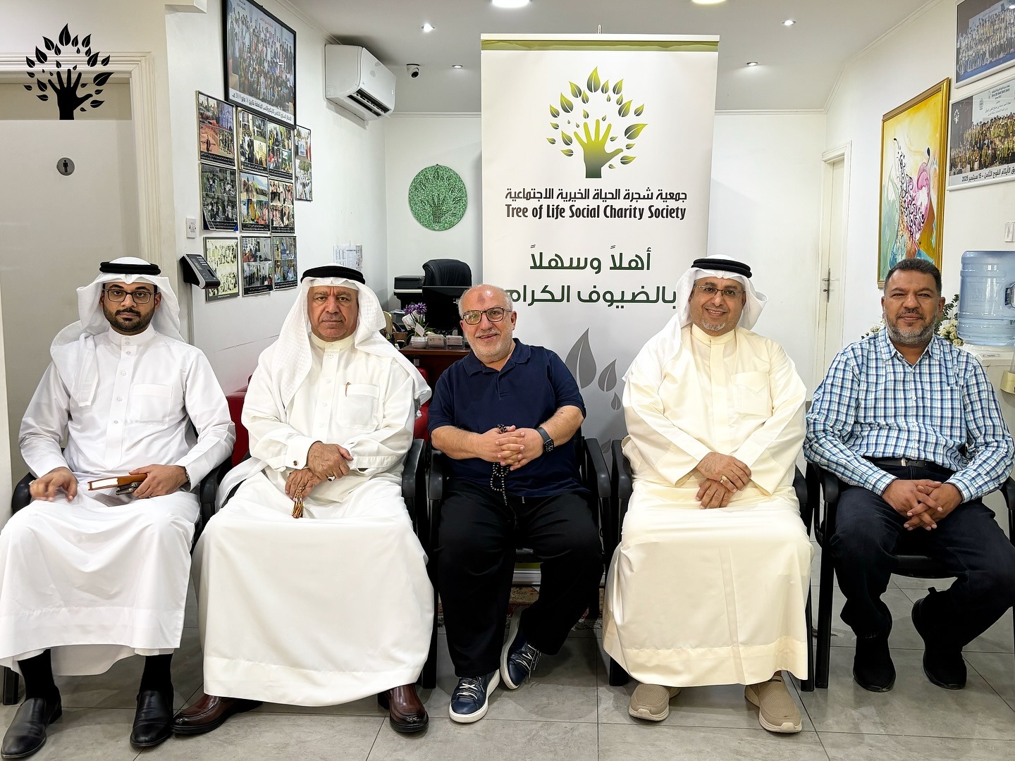 The Tree of Life Social Charity Society held a fruitful meeting on Saturday, October 18, 2025, at its headquarters with Abdulhussain Al-Daif, Chairman of the Board of Directors of Damistan Charity Society, along with Saeed Al-Majid, Secretary General, Yasser Majeed, Vice Chairman of the Ta'afy Health Initiative, Rabab Hussein, Chairperson of the Women, Children, Student Support and Community Development Committee, and Mohammed Attia, Executive Secretary of the Society. The meeting was received by Engineer Khalil Al-Daylami, Chairman of the Board of Directors, and a number of employees. The meeting addressed ways to develop joint programs to serve needy families and orphans, and to exchange experiences in organizing development initiatives and projects. The two parties also discussed the possibility of implementing joint activities in the future that would contribute to expanding the scope of community giving and consolidating the culture of solidarity in Bahraini society. This meeting took place in a friendly atmosphere that reflects the spirit of cooperation and a keenness to achieve the goals of joint humanitarian work.